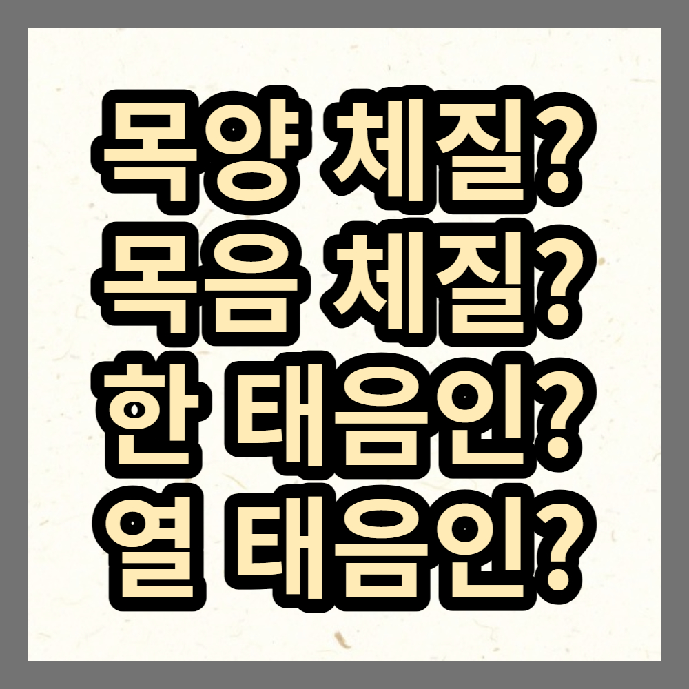 목체질은 목양체질과 목음체질이 있습니다. 사상의학의 태음인도 열자(熱子, 열 생성이 잘되는 사람)와 한자(寒子, 열 생성이 잘 안 되는 사람)로 나누는데, 다른 체질에 비해서 뚜렷하게 나누는 편입니다. 목양체질과 목음체질이 태음인 열자와 한자에 흡사함을 보이니 다른 체질에 비하여 음양의 구분이 용이한 편입니다.